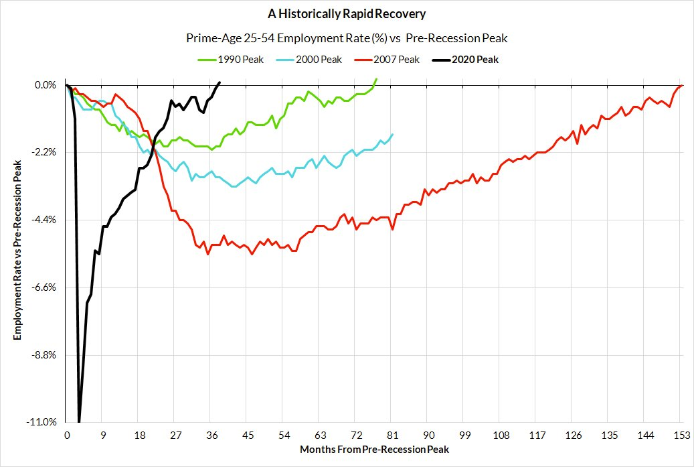 지난 주 스칸다 아마르나스는 지난 경기 침체기의 주요 연령대(25-54세) 고용 회복에 관한 차트를 공유했습니다: