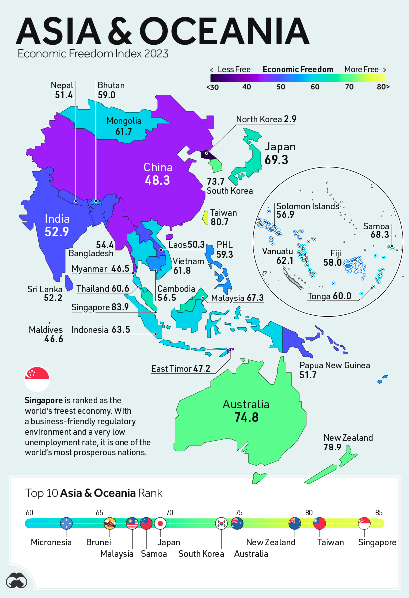 - Visual Capitalist, "Mapped: The State of Economic Freedom in 2023"